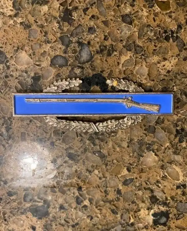 Ответ: это боевой значок пехотинца, его присваивают тем солдатам США, которые непосредственно принимали участие в военных действиях.