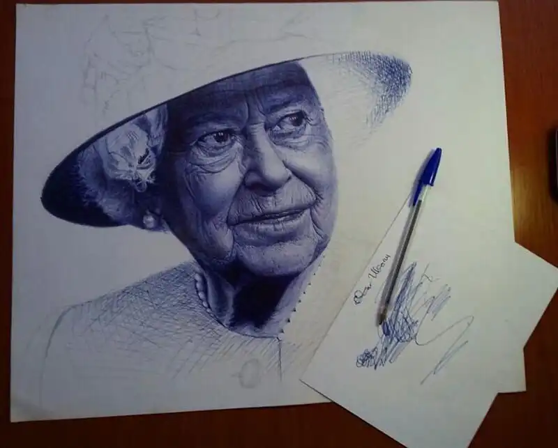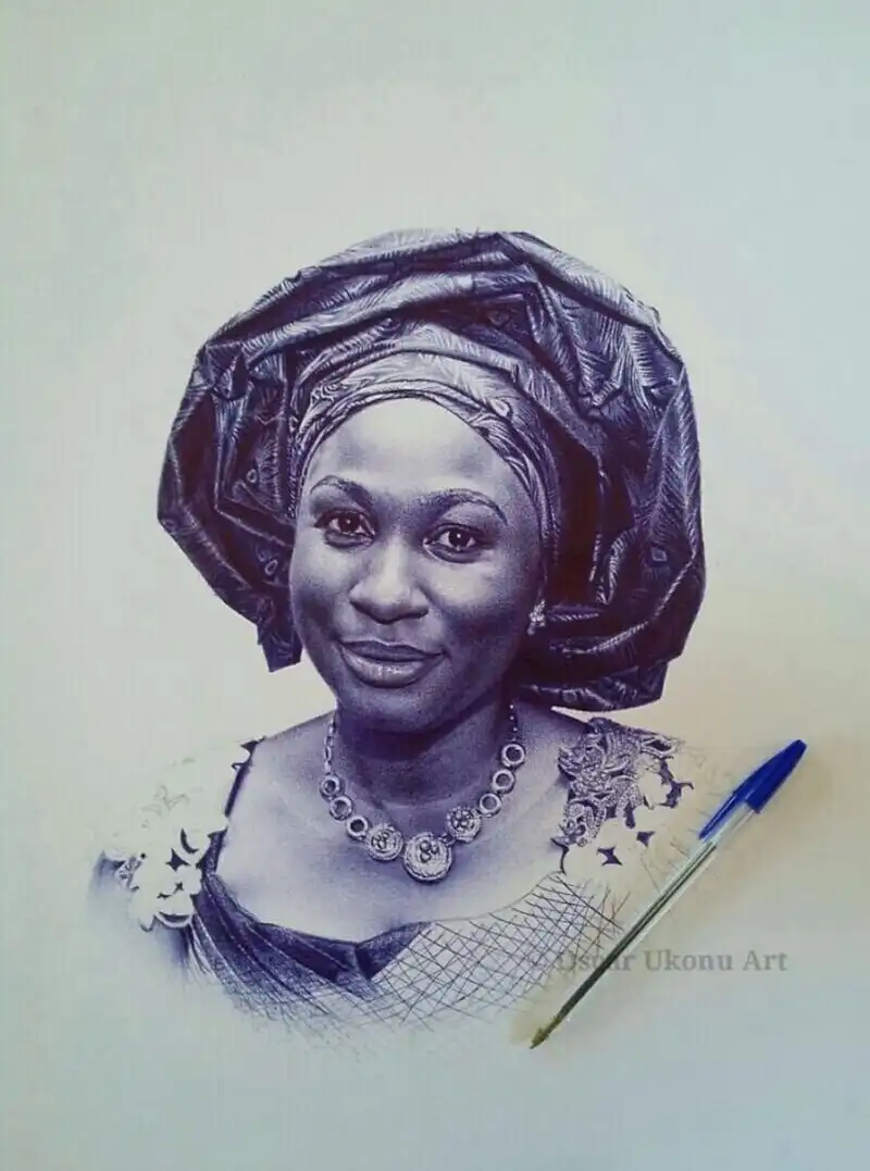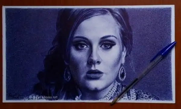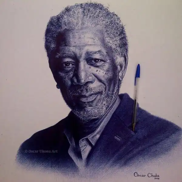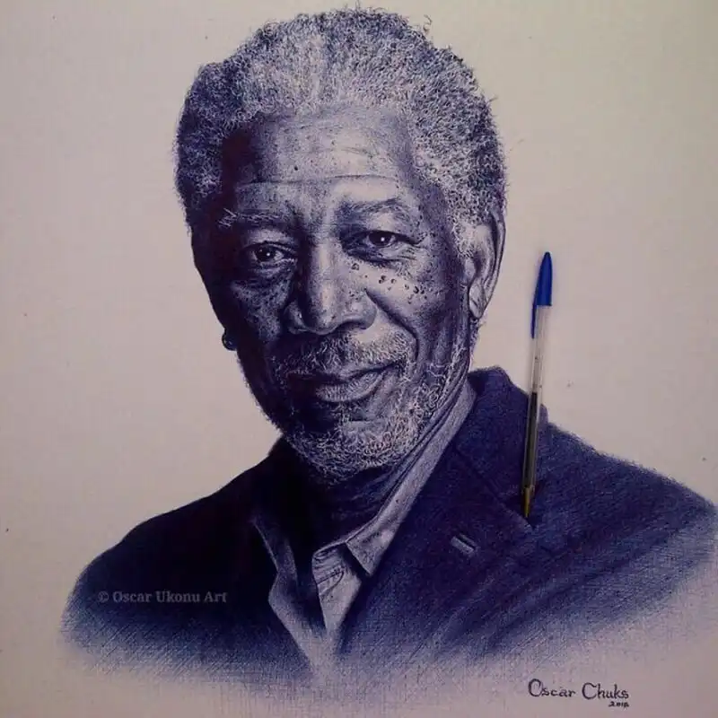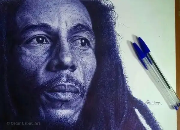 Оскар Укону (он же Оскар Чукс) из Нигерии обладает навыками, открывающими истинную силу чернил синего цвета. Он рисует ручками более 5 лет и принадлежит к числу одних из самых известных в мире художников, использующих это орудие труда для создания своих невероятно реалистичных портретов, которые со стороны даже больше кажутся фотографиями, пропущенными через синий фильтр.
