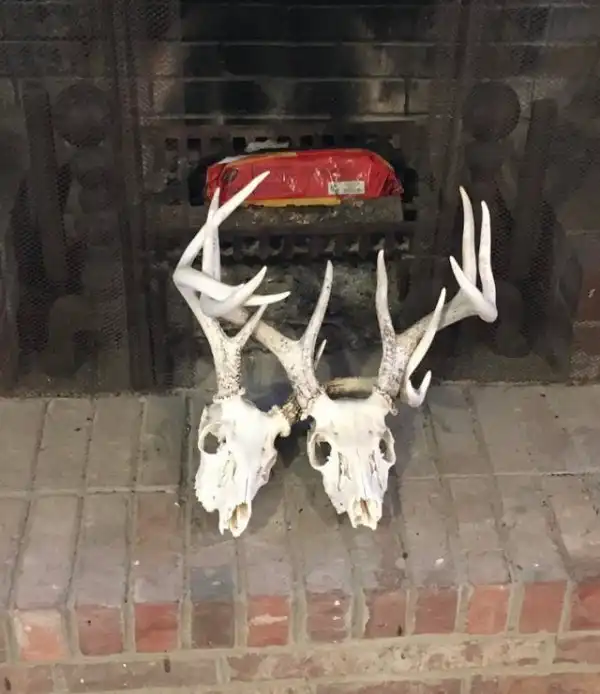 Черепа двух оленей, которые погибли вместе, сцепившись рогами в драке
