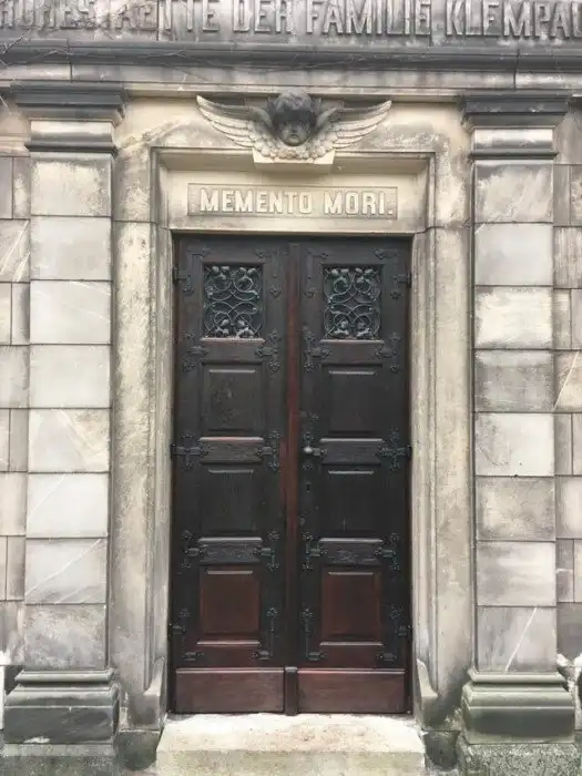Внимание пользователей привлекла не только сама реставрация, но и надпись над входом в мавзолей "Momento Mori", давно ставшая крылатой