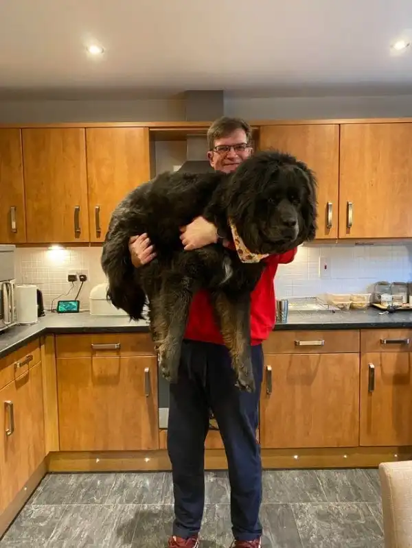10-месячный щенок мастифа и мужчина ростов 195 см
