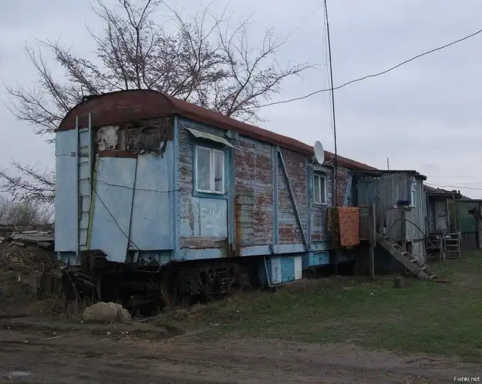 Когда-то списанные вагоны отдавали путейным работникам и они самотсотялеьно делали из этого какое-то подобие жилья