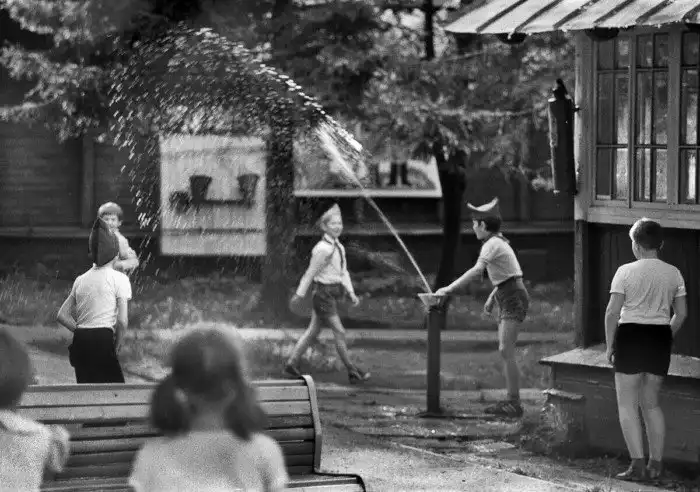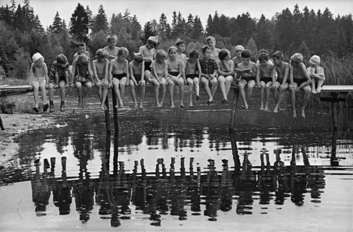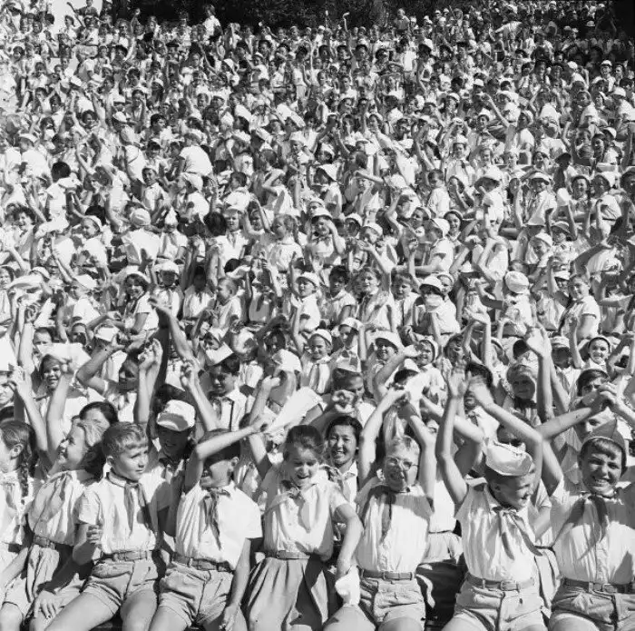 Пионерский лагерь «Артек». Дети на трибуне стадиона