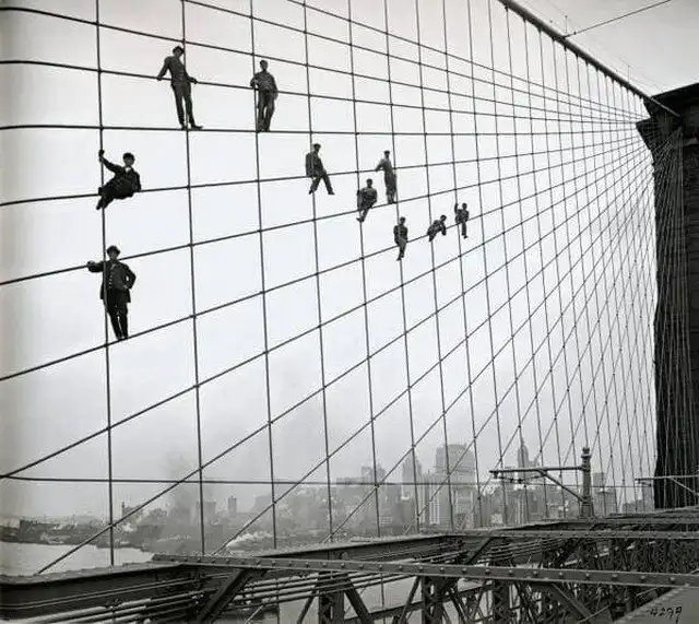 Маляры красят Бруклинский мост. США. 1914 г.
