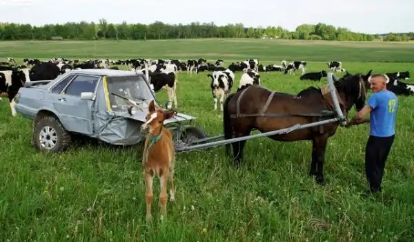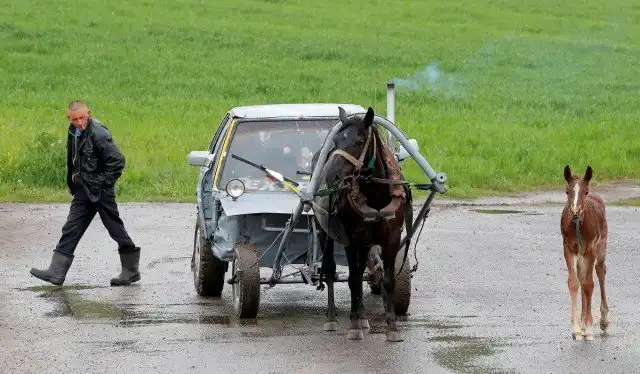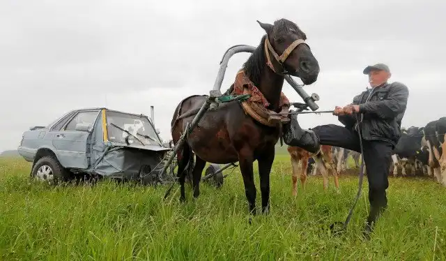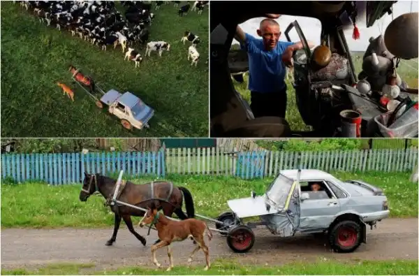 33-летний пастух Алексей Усиков из деревни Слабодка, Беларусь, соорудил оригинальную повозку из строго кузова автомобиля. Мужчина использовал старый Audi-80, которую он в шутку называет “Audi-40”, поскольку понадобилась только половина автомобиля. Повозка Алексея оборудована аккумулятором, фарами, небольшой печкой и даже магнитолой. В движение транспортное средство приводится при помощи кобылы по кличке Зорка.