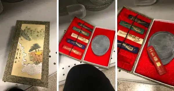 Ответ: Китайская или японская тушь в блочной форме. Вы используете блюдо с небольшим количеством воды, чтобы приготовить пригодную для использования жидкость.