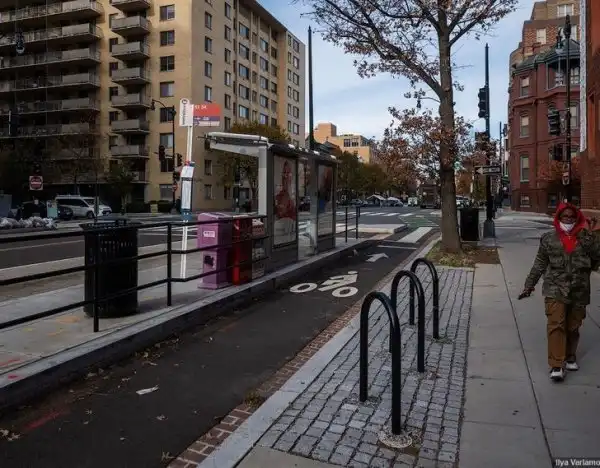 Объездная дорожка в Вашингтоне, по которой велосипедист может проехать, если на остановке стоит автобус
