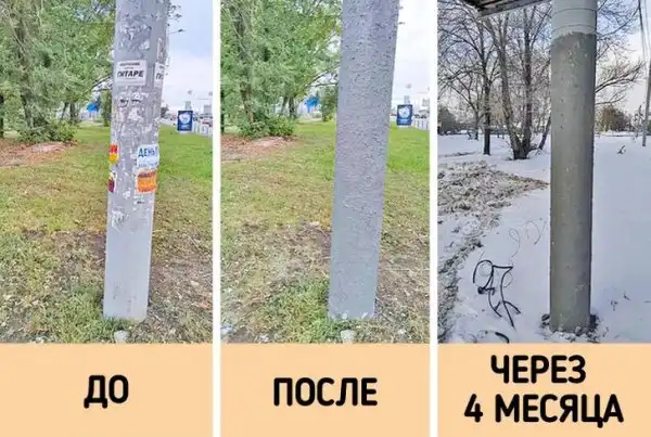Если красить городские столбы краской с песком, к ним невозможно будет приклеить бумажные объявления. Россия