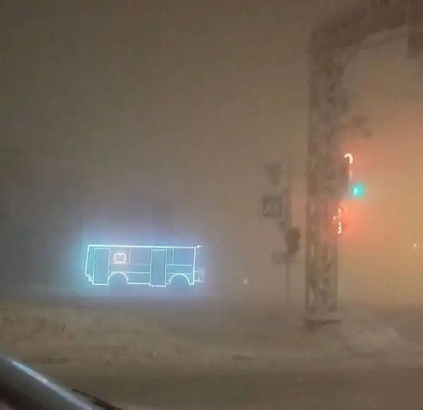 Якутск, минус 47. Автобусы украсили светодиодными лентами, и теперь их видно издалека