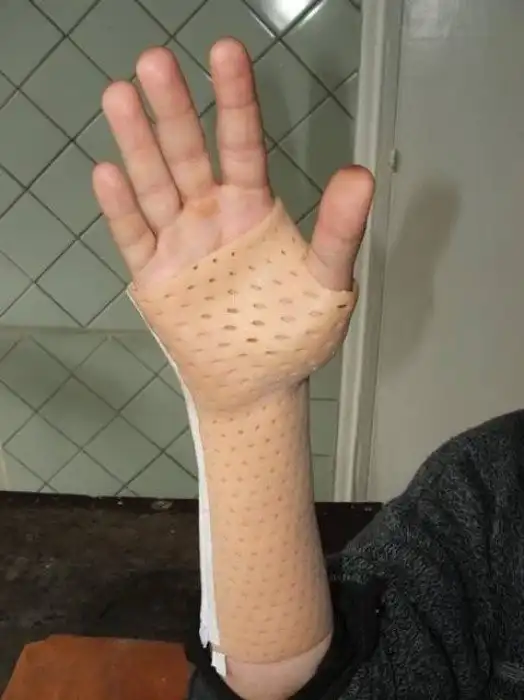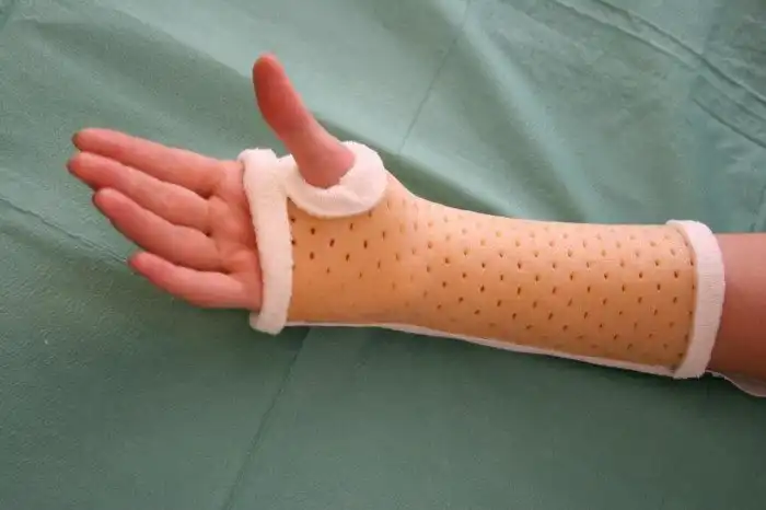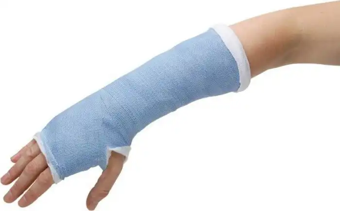 Это полимерный гипс, прочный и жесткий, за счет чего надежно иммобилизует перелом. Самый легкий из всех искусственных бинтов. Под него надевается специальный подкладочный чулок, чтобы не травмировать кожу.