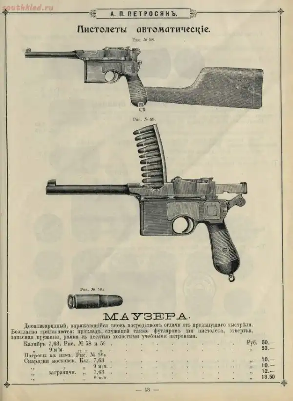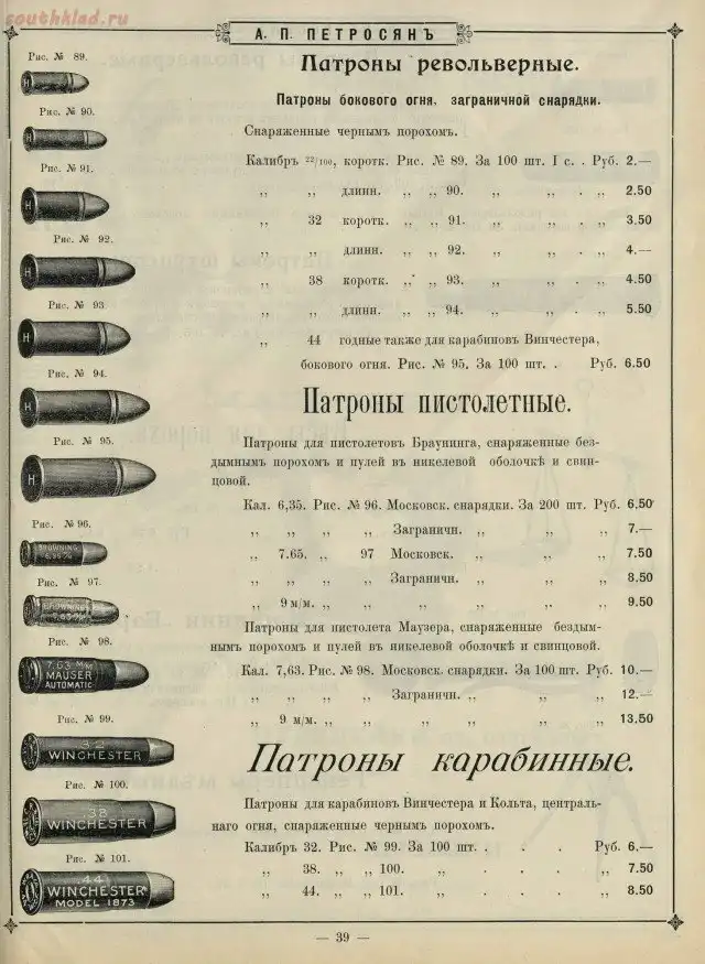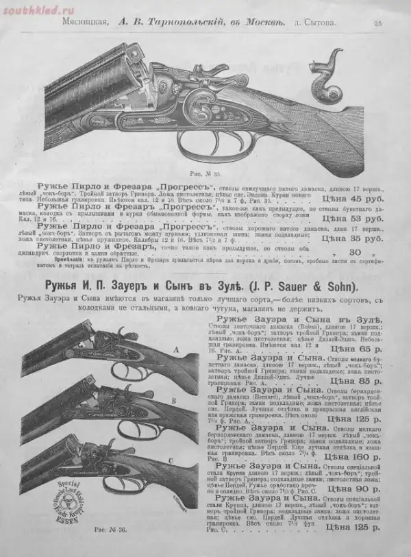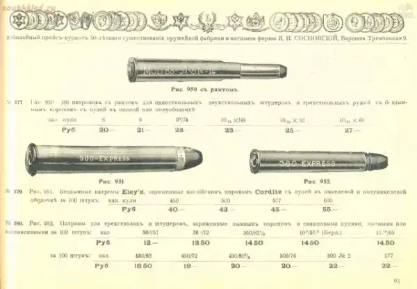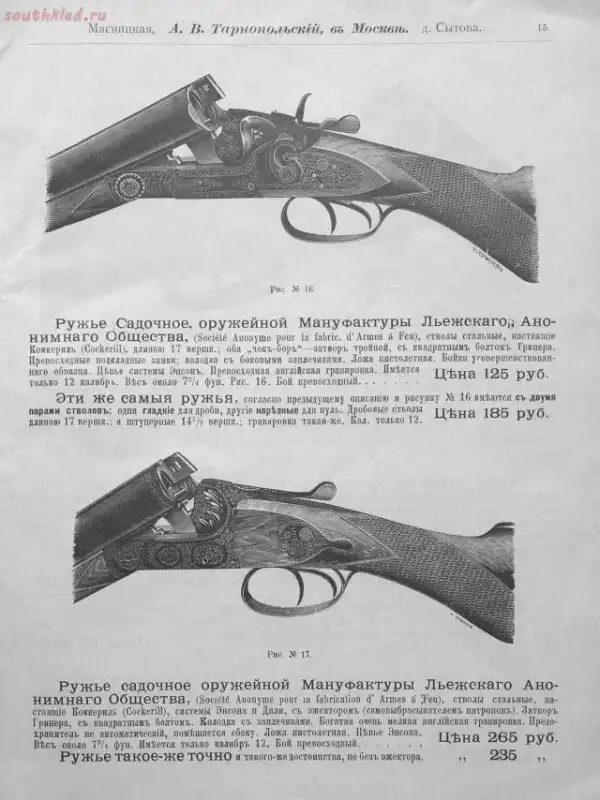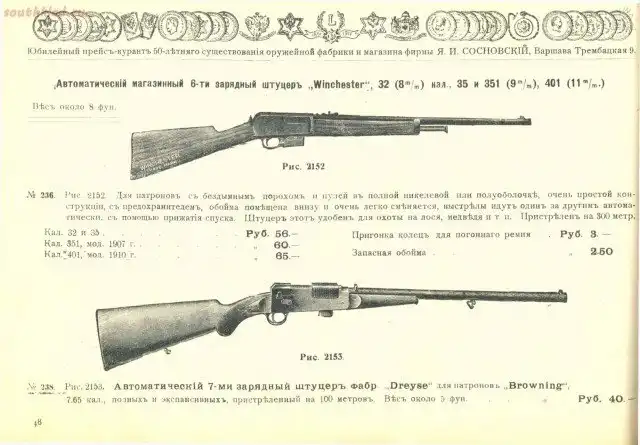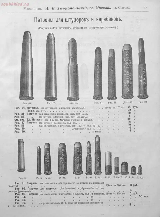 Прейскуранты оружейных магазинов царской Росии