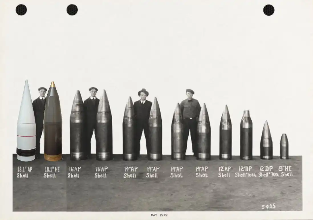 Заряд и снаряд 18-дюймового тяжелого артиллерийского орудия