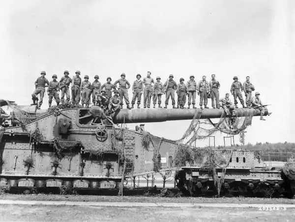 Знаменитая пушка «Дора» калибра 800 мм. Она была спроектирована для разрушения наиболее мощных сооружений линии Мажино, однако использовать её там для этого не пришлось. Это было чудо артиллерийской техники. Ствол имел длину порядка 30 м, а лафет достигал высоты трехэтажного дома. Потребовалось около 60 железнодорожных составов, чтобы по специально проложенным путям доставить это чудовище на огневую позицию. Для его прикрытия постоянно стояло наготове два дивизиона зенитной артиллерии. В целом эти расходы, несомненно, не соответствовали достигаемому эффекту. Тем не менее, это орудие одним выстрелом уничтожило большой склад боеприпасов на северном берегу бухты Северной, укрытый в скалах на глубине 30 м". Из воспоминаний немецкого фельдмаршала Манштейна