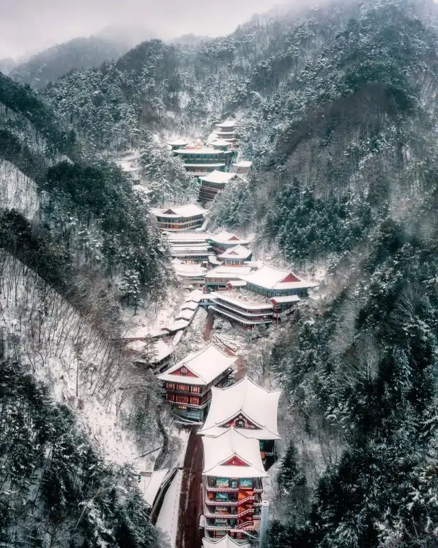 Буддийский храм Guinsa (Храм Спасения и Добра) в заснеженных горах Южной Кореи