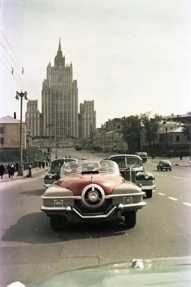 Спортивный автомобиль ЗИС-112/1 на улицах Москвы, 1956 г.