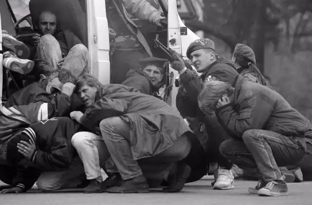Спецназ с гражданами Сараево, 6 апреля 1992 года.