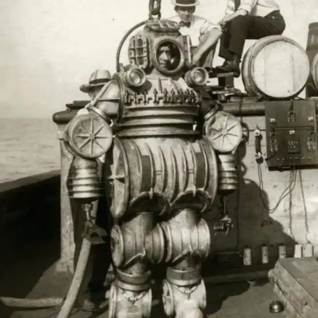 Спуск Водолаза в глубоководном костюме с электроподзарядкой для исследования океана, США 1921 год