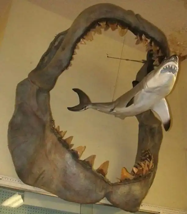 13. Пасть мегалодона в сравнении с 3-метровой большой белой акулой