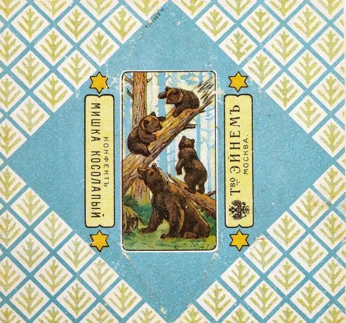 108 лет. Этикетка конфеты «Мишка косолапый» производства Товарищества паровой фабрики шоколадных конфект и чайных печений «Эйнем». 1913 год