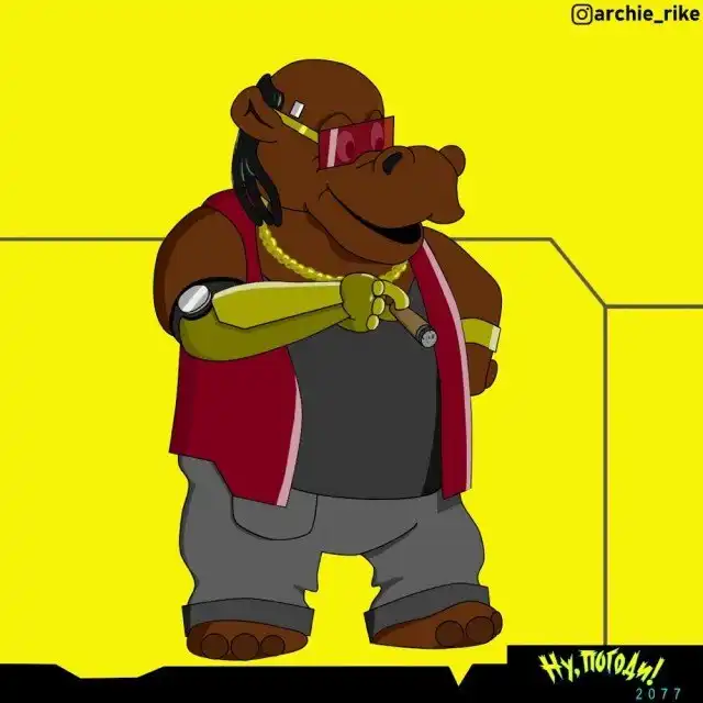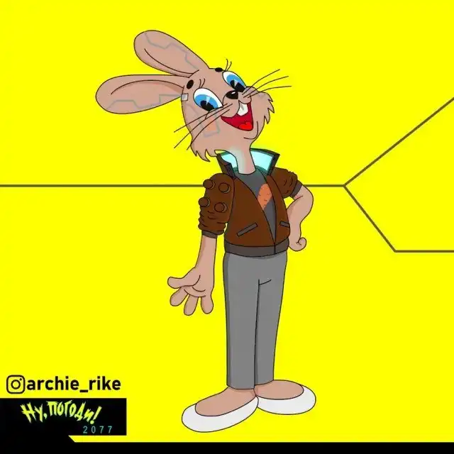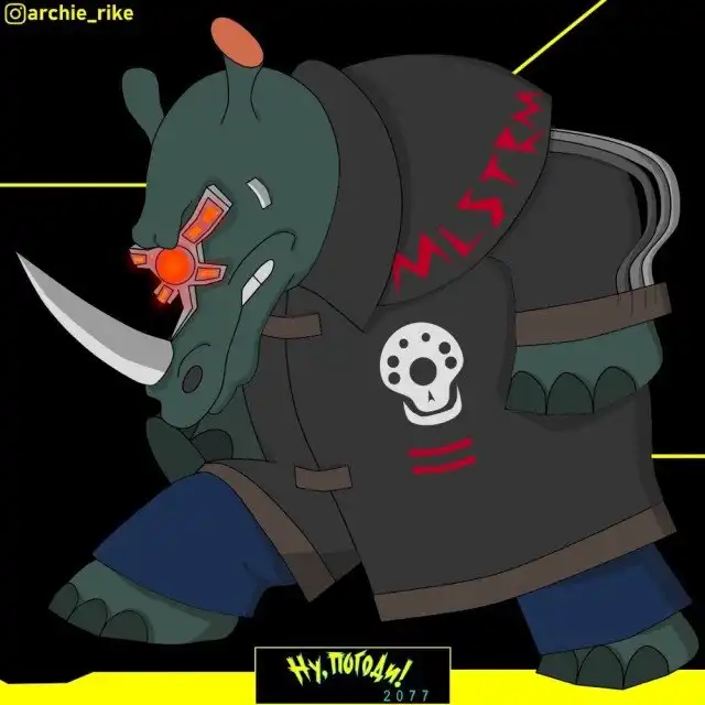 Художник ArchieRike показал героев "Ну, погоди!" в антураже Cyberpunk 2077