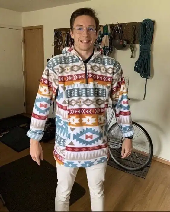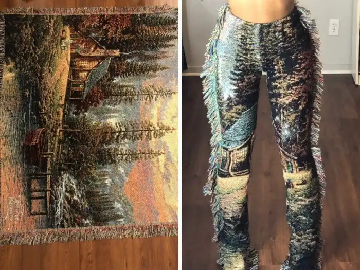 Сделала для своего друга пончо из старого одеяла. Надеюсь, ему в нём комфортно