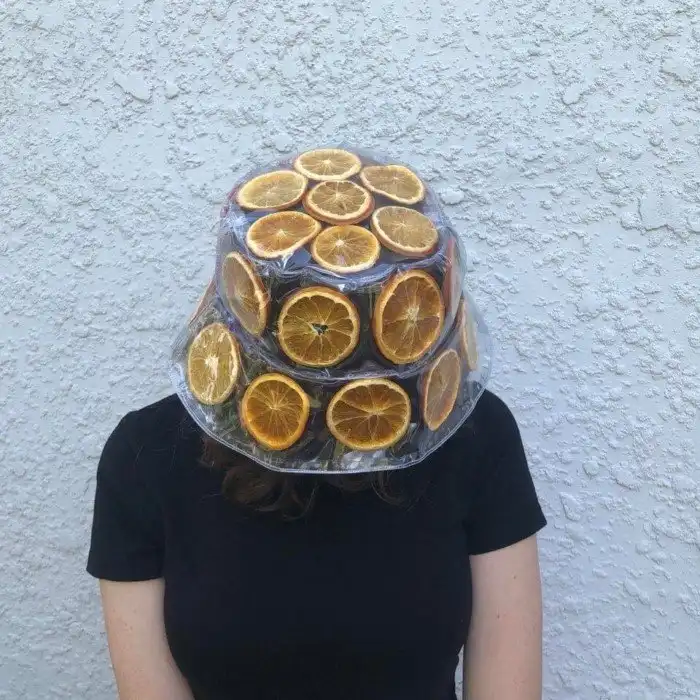 Сделала панамку вручную, сшив сушеные дольки апельсина между тканью. Было сложно, но я очень довольна результатом