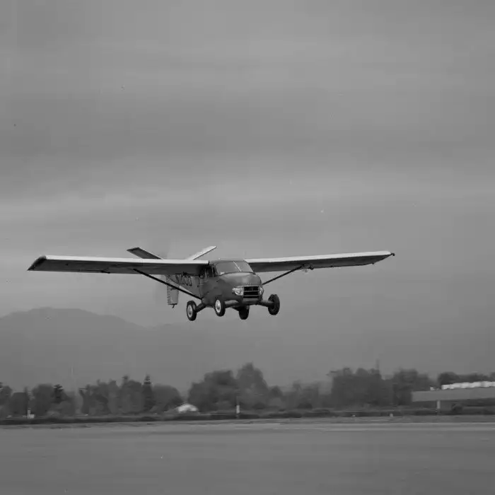Со складывающимися крыльями Aero-Car стал первым многообещающим автомобилем класса «дорога-небо». Прототипы могли развивать скорость 60 миль в час на земле и 110 миль в час в небе. 1966 г.