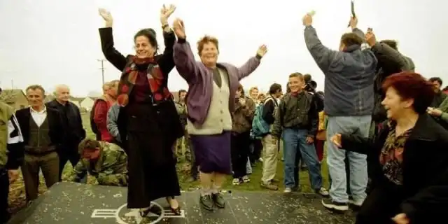 Танцы на сбитом бомбардировщике F-117 под Буджановцами, Югославия, 1999 год.