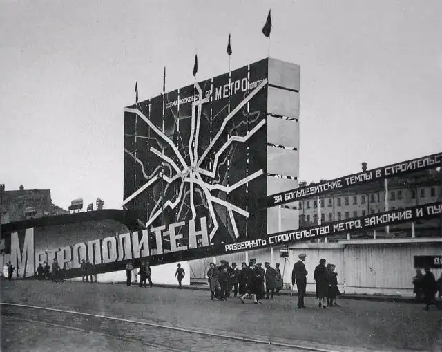 Уличная реклама с перспективной схемой Московского метрополитена, 1932 год