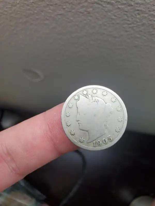 Это 200-летняя монета поцарапалась так, как будто человек на ней надел маску