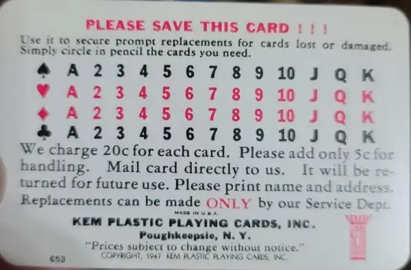 Карта для замены потерянных в колоде 1947 года
