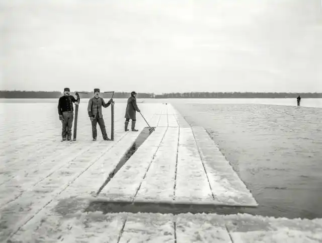 Заготовка льда на водохранилище Хорн Понд, штат Массачусетс, 1906 год.