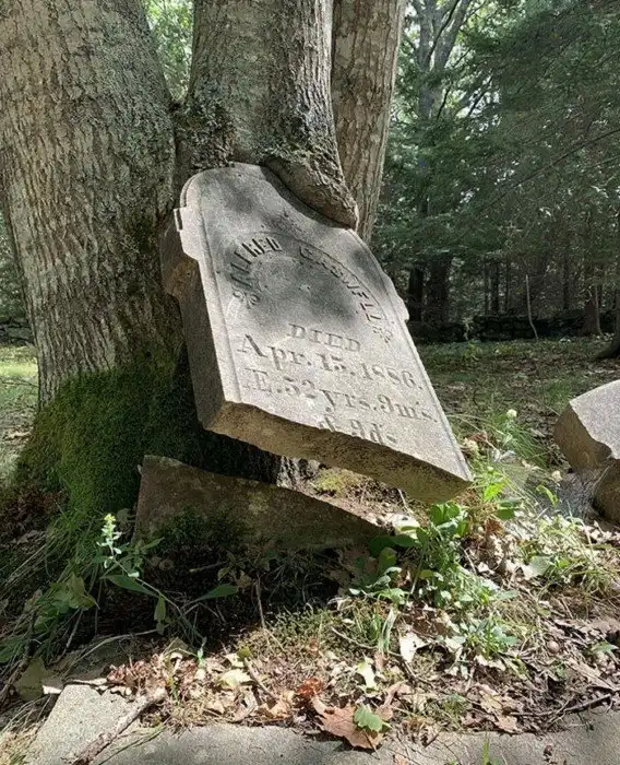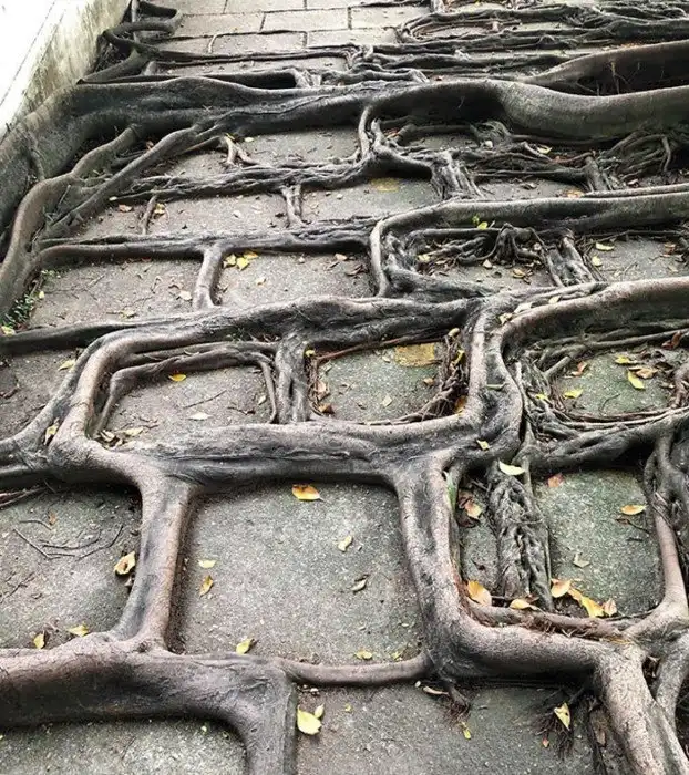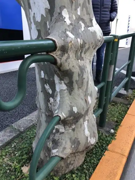 11. Дерево наросло вокруг знака о пешеходном маршруте
