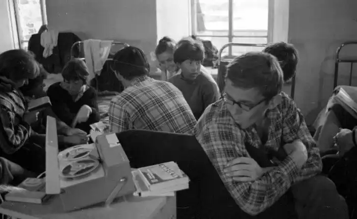 Студенты стройотряда МГУ в общежитии