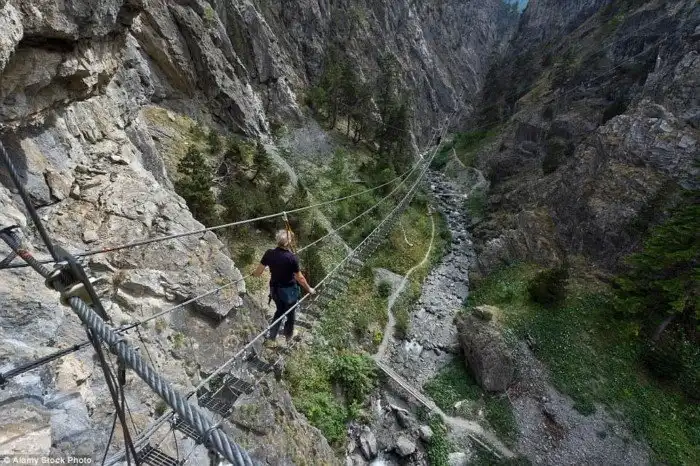 Швейцария, самый длинный подвесной пешеходный мост в мире - 80 метров в высоту, 494 метра в длину