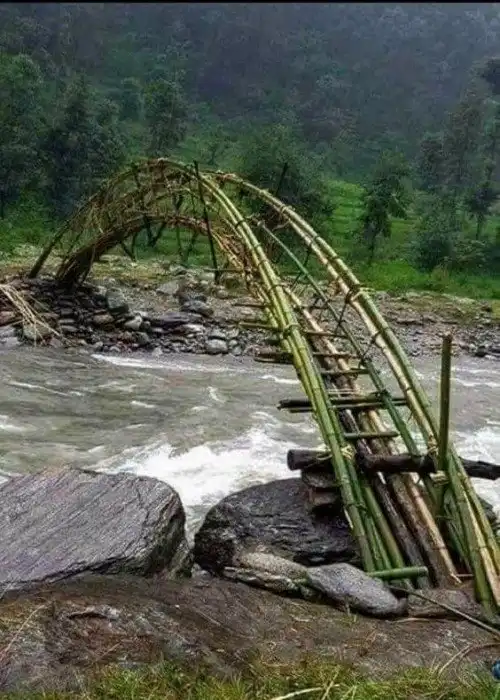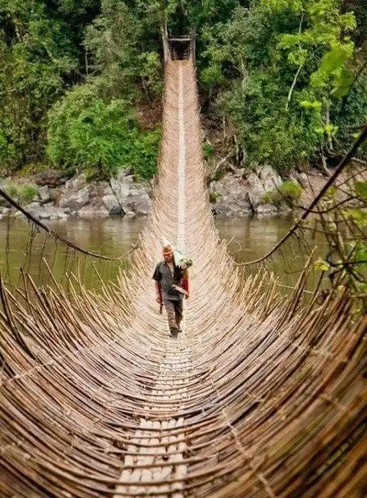 Висячие бамбуковые мосты на реке Сианг (Индия0