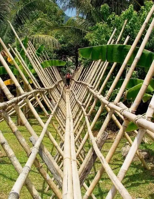 «Мосты обезьян» (Вьетнам) состоят из одного большого бревна для ног и другого меньшего размера для рук