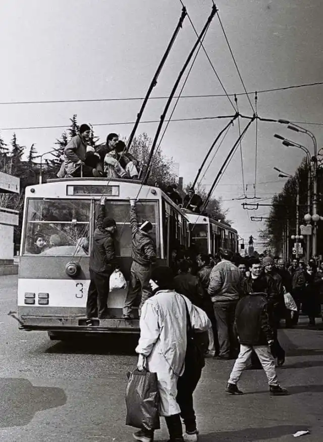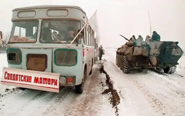 Автобус с матерями военнослужащих, направляющийся в Грозный, 1996 год.
