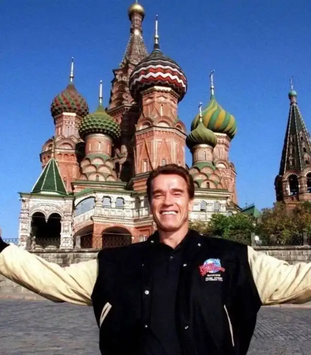 Арнольд Шварцнеггер во время посещения Москвы в 1996 год