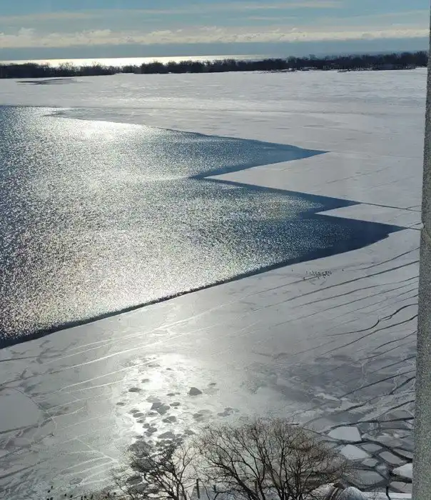 Лед на поверхности озера Онтарио имеет идеальные прямые углы