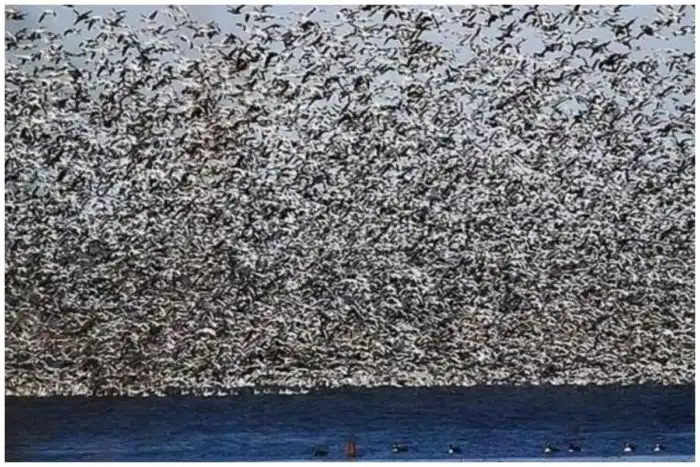 Около 2000 каноэ и каяков плавают на Четвертом озере в Адирондаке, и все яхтсмены держатся за руки, чтобы побить рекорд самого большого плота в мире