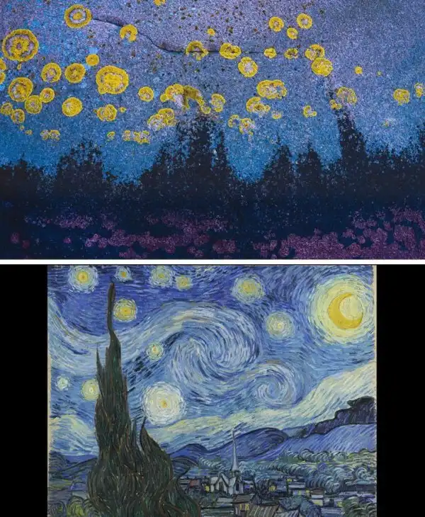 На западном побережье Швеции на скале я нашел узор из водорослей и лишайников, который подозрительно похож на „Звездную ночь“ Ван Гога