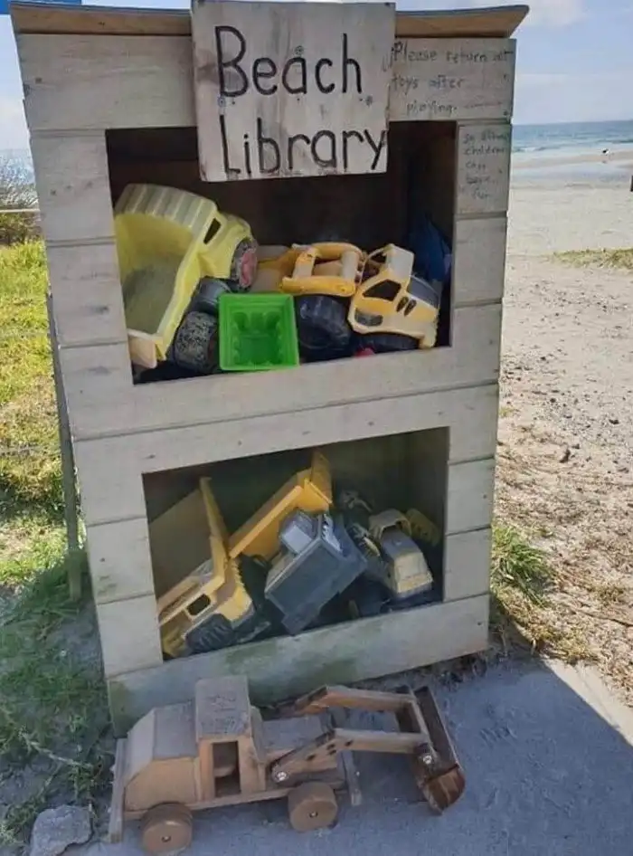 На пляже для детей сделали место, где можно оставить свою игрушку и взять любую другую