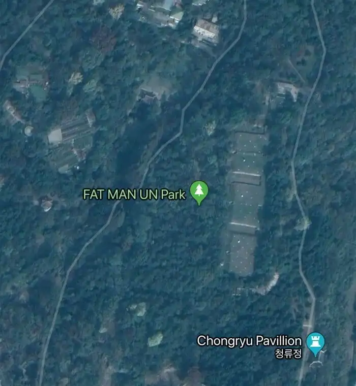 «Парк в Пхеньяне, Северная Корея. Кто-то в Google решил подшутить над славным лидером?».