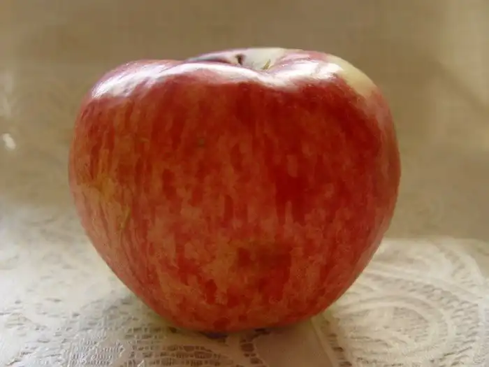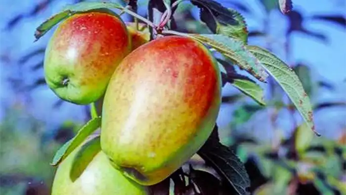Это яблоко сорта Апорт. необычно оно тем, что его плоды могут вырастать просто гигантскими. Рекордный вес плодов этого сорта, который когда-либо получали садоводы, составляет 3 килограмма
