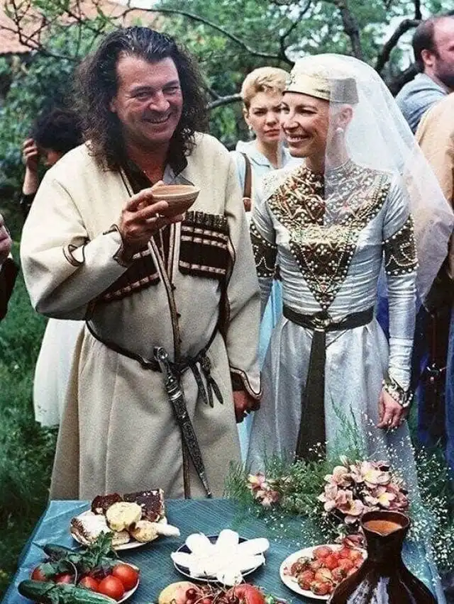 Вокалист группы Deep Purple — Иэн Гиллан, со своей женой Брон, на церемонии венчания в Тбилиси, СССР, 1990 год.
