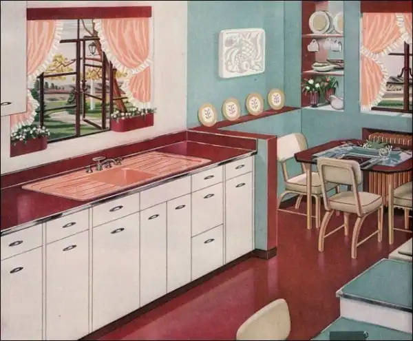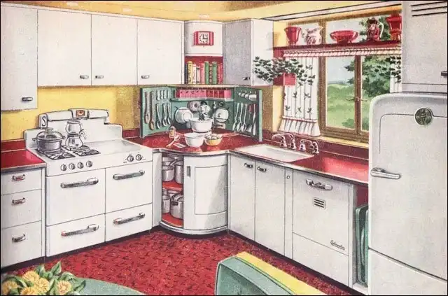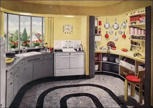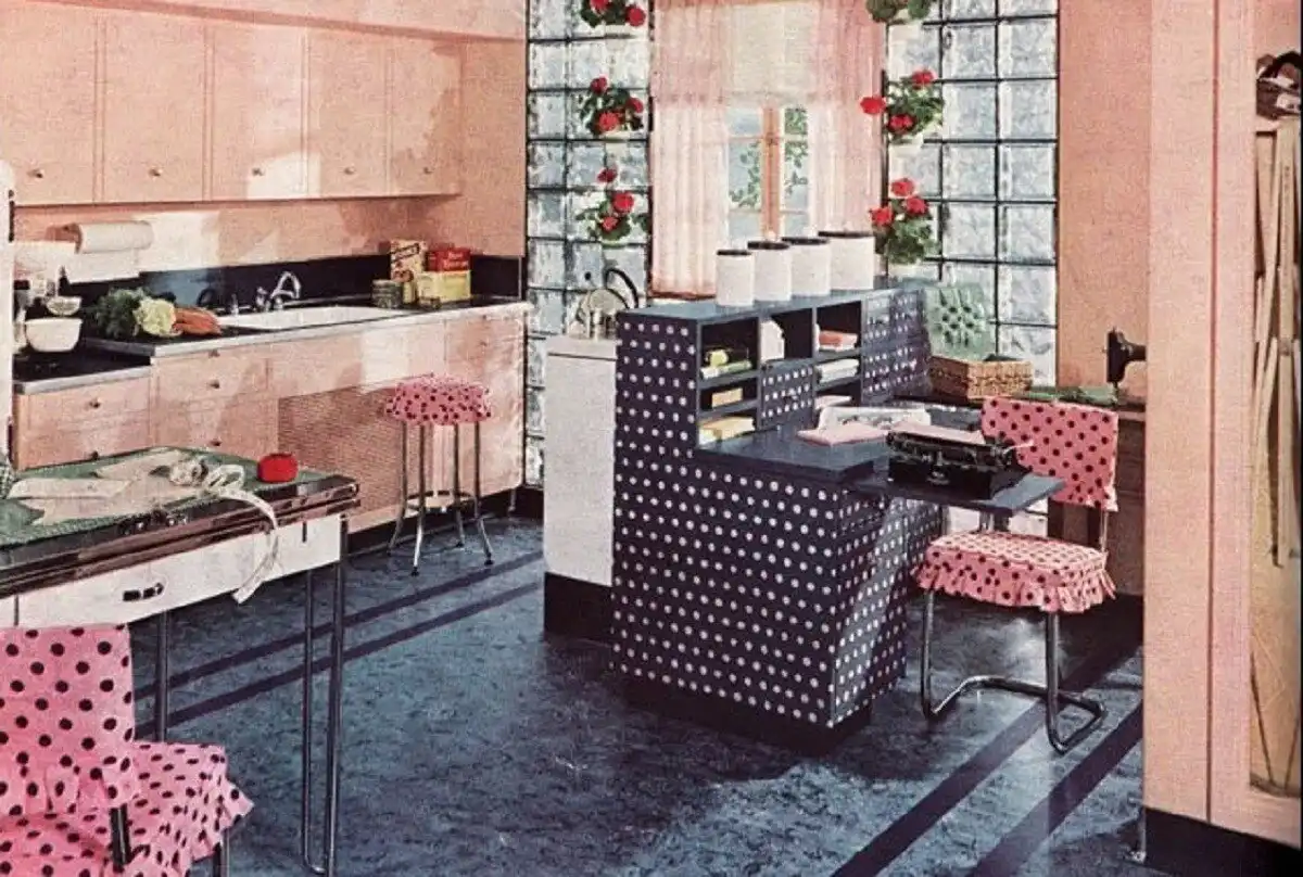 Вторая половина 1940-х стала для Америке временем бума строительства и дизайна. После войны люди наслаждались возможностью обустраивать мирную жизнь, строили дома и делали ремонты. Особой популярностью пользовались дизайнерские проекты кухонь. Вот так выглядели образцовые послевоенные кухни в американских жилищах.