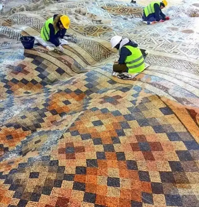 Мозаичный пол в Турции, который из-за землетрясения стал похож на ковёр