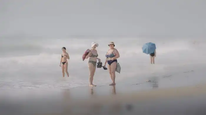 Женщины, наслаждающиеся утренней утренней прогулкой по пляжу в Аликанте, Испания.