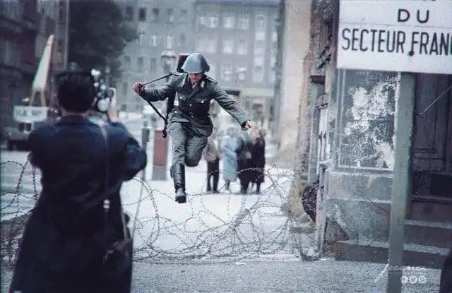 "Прыжок в свободу": немецкий солдат покидает советскую зону оккупации. Берлин. 1961 год.